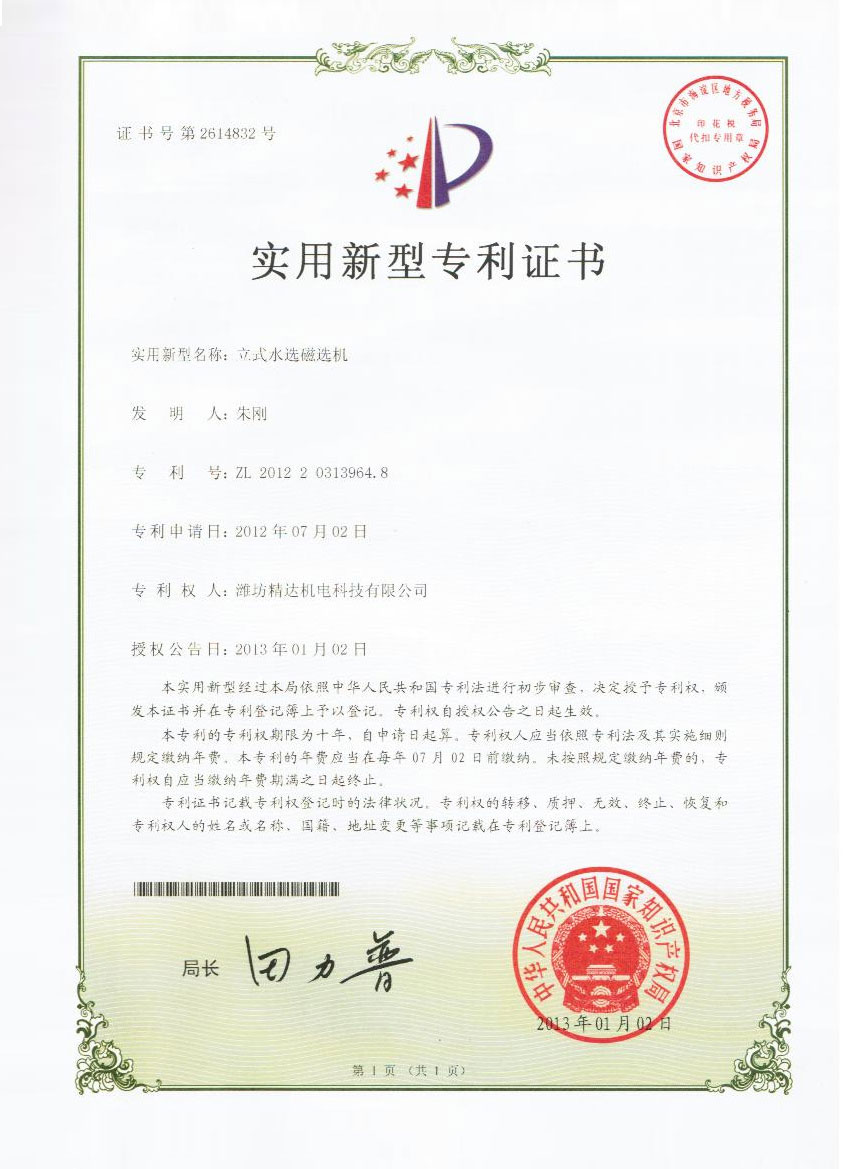 Utility Model Patent Certificate